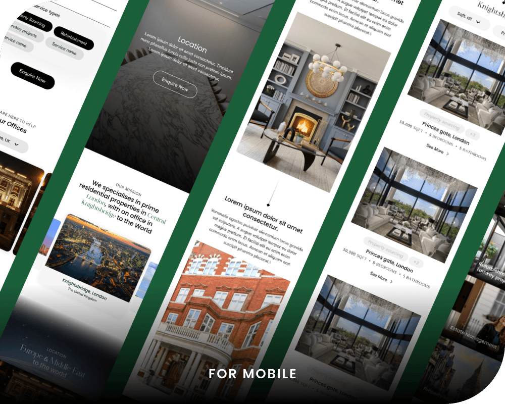 Custom interface components, including property galleries and location maps, maintained design coherence while meeting functional expectations. The responsive design ensured a premium experience across devices, with a focus on tablet optimization for clients viewing properties on the go. Subtle animations enhanced the digital experience, mirroring Attaché London’s attention to detail.