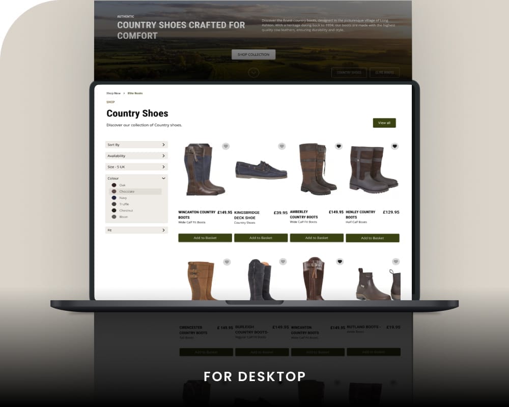 We engineered a custom responsive e-commerce platform optimised for conversions across all devices, featuring intelligent product filters and specialised functionality highlighting Cabotswood’s premium boot collection.